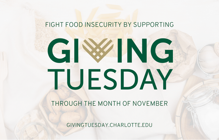First, there is a day of thanks. Then, there are three days of deals. Now we have a day to give back. Support UNC Charlotte's Giving Tuesday campaign to fight food insecurity for all Niners through the Jamil Niner Student Pantry and Niner University Elementary because no Niner should go hungry this holiday season.