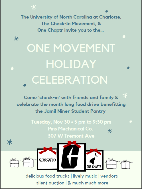 Make a gift today to ensure every Niner has access to nutritious food this holiday season. Your donation can allow students to focus on their academic success instead of where to get their next meal.